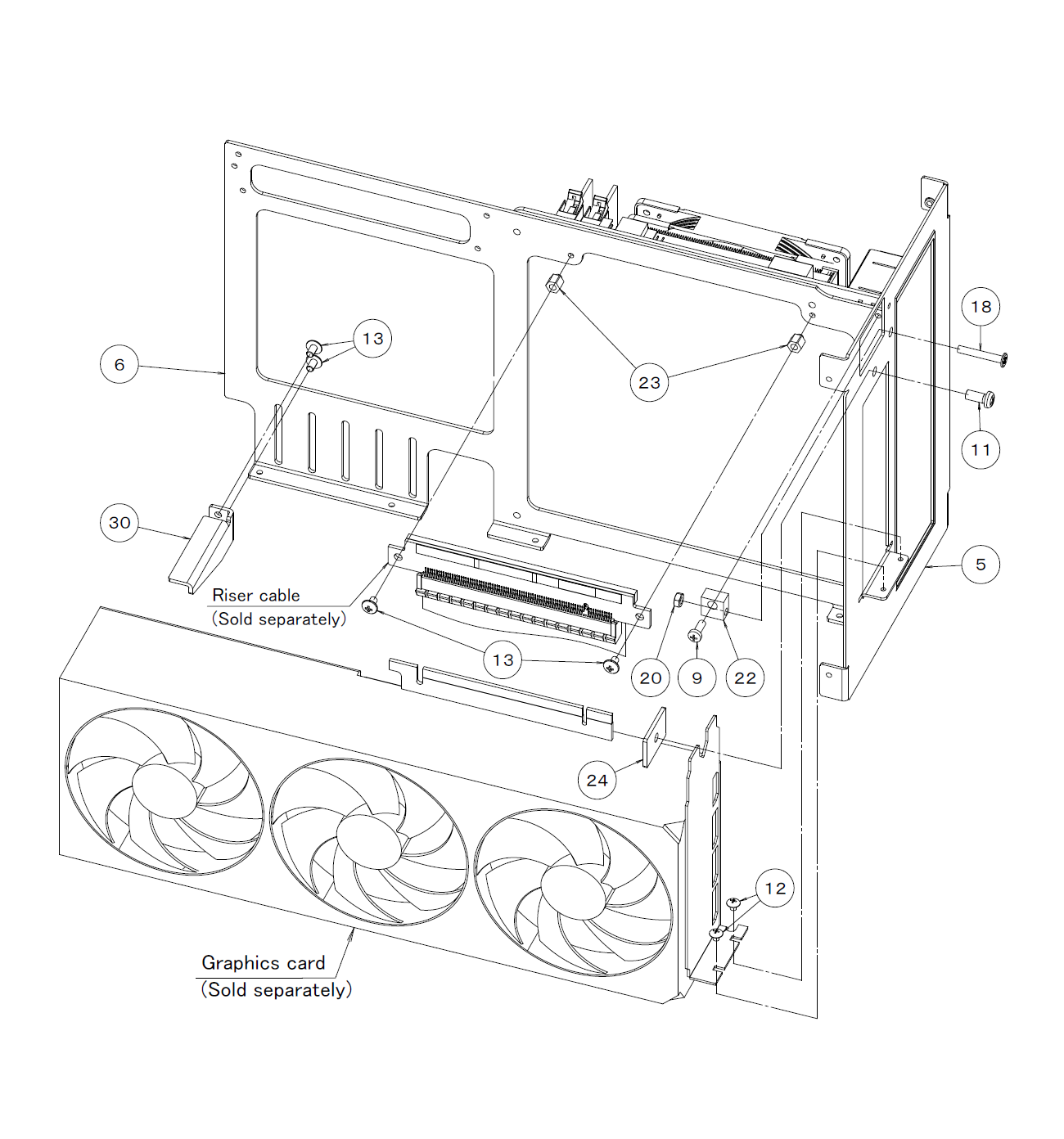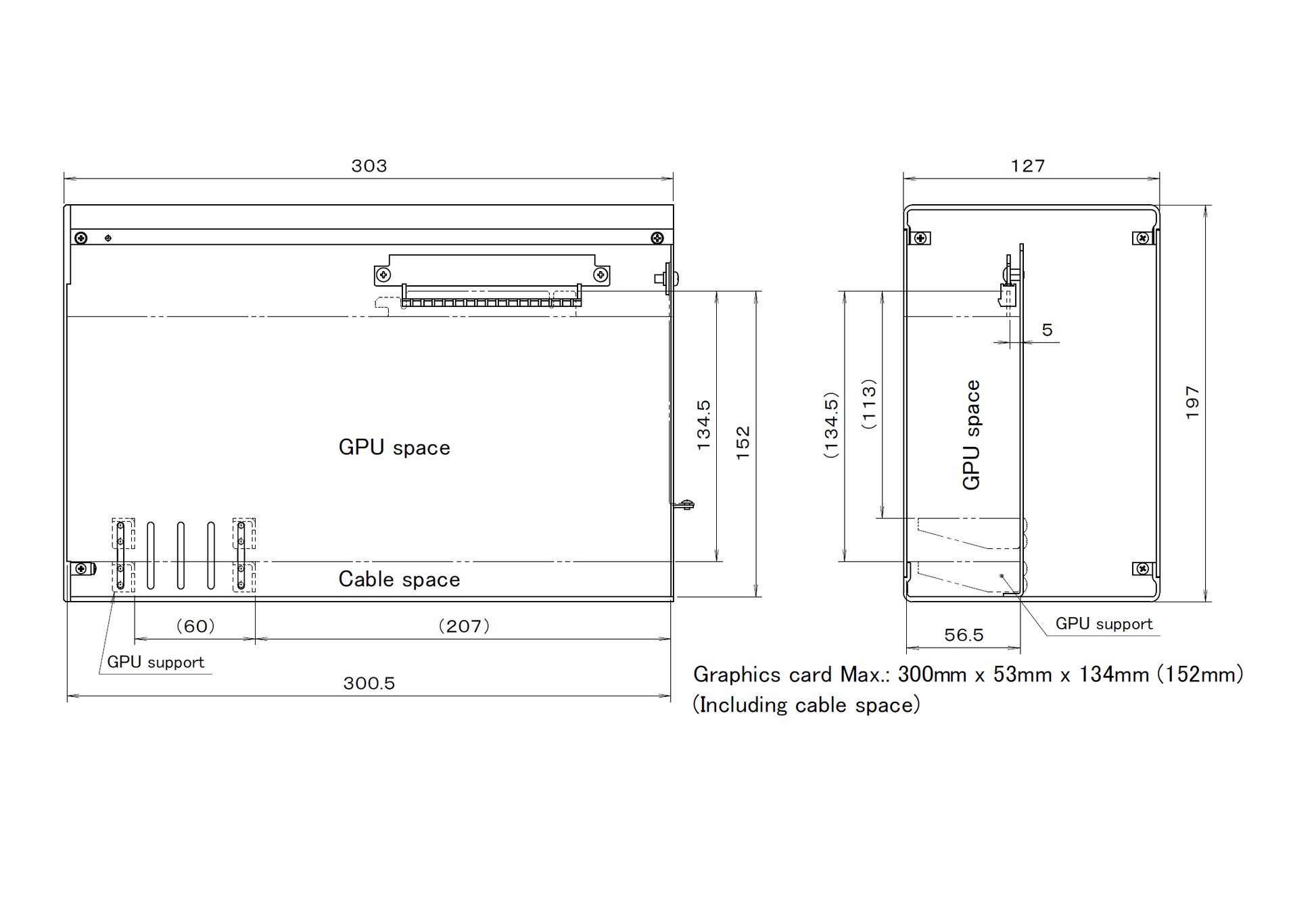 Graphics card Max.: 300mm x 53mm x 134mm.